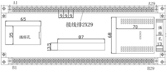 本模块为了满足小电流接地选线装置的跳闸口扩充需求而研制,采用标准导轨安装方式在柜内加装。本模块有22个跳闸继电器,均为常开接点,编号为1~22。模块尺寸为:长300mm、宽110mm、高110mm。